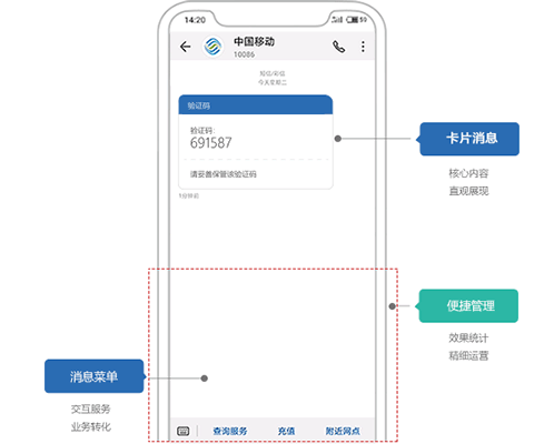 为企业消息专属码号进行认证及服务菜单配置,打造企业品牌传播及获客、转化新入口,让短信入口发挥更大势能。